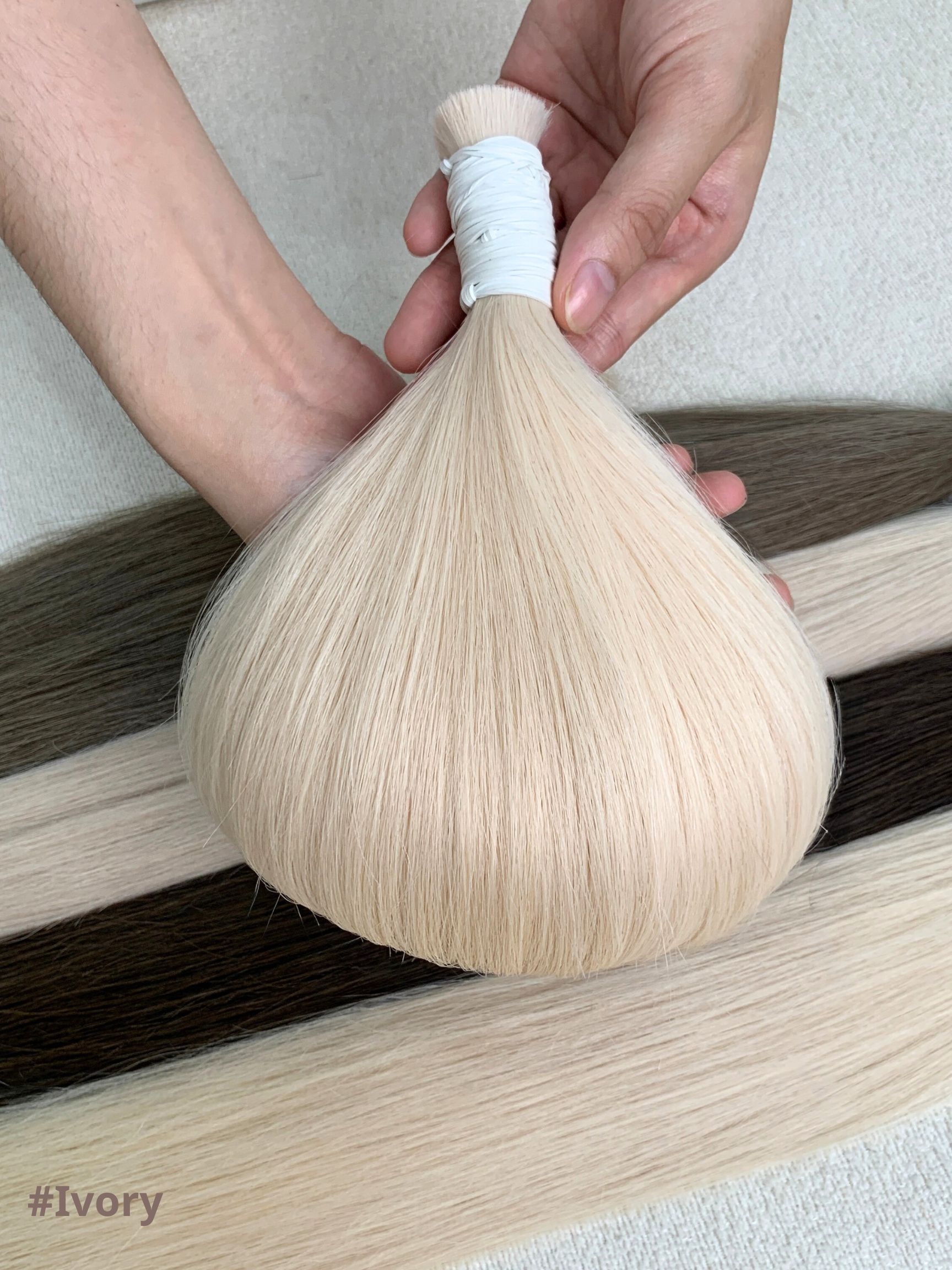 - Wefting & Other Extension Types: Bulk hair can be sewn into machine wefts, hand-tied wefts, I-tips, U-tips, V-tips, or tape-ins, allowing hairstylists to meet diverse customer preferences. With pre-colored bulk hair, it saves time for salons and vendors by avoiding the extra coloring process.